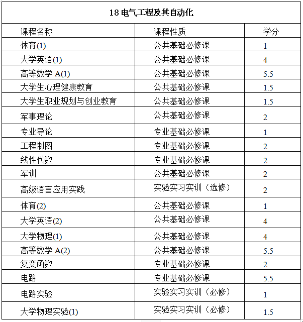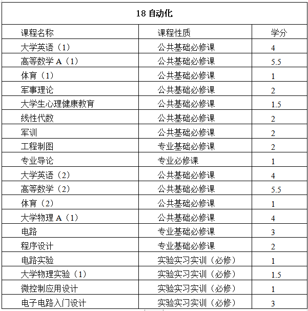 表2 自动化leyu乐鱼·官方web站登录入口各专业一年级教学计划